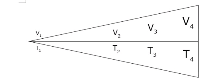 For a direct relationship, when the temperature increases, the volume will also increase at the same rate and vice versa, at constant pressure .The diagram above shows that when V is decreasing, T is also decreasing and when V is increasing, T is also increasing thus, making the quotient constant.