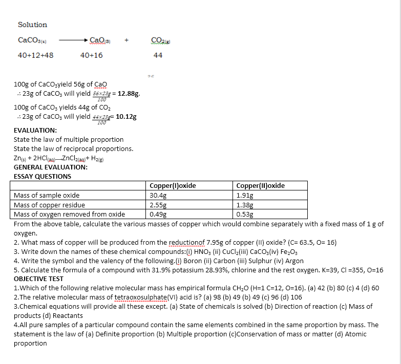 | Percentage of copper present in copper (ii) oxide | ×100 | × 100 |